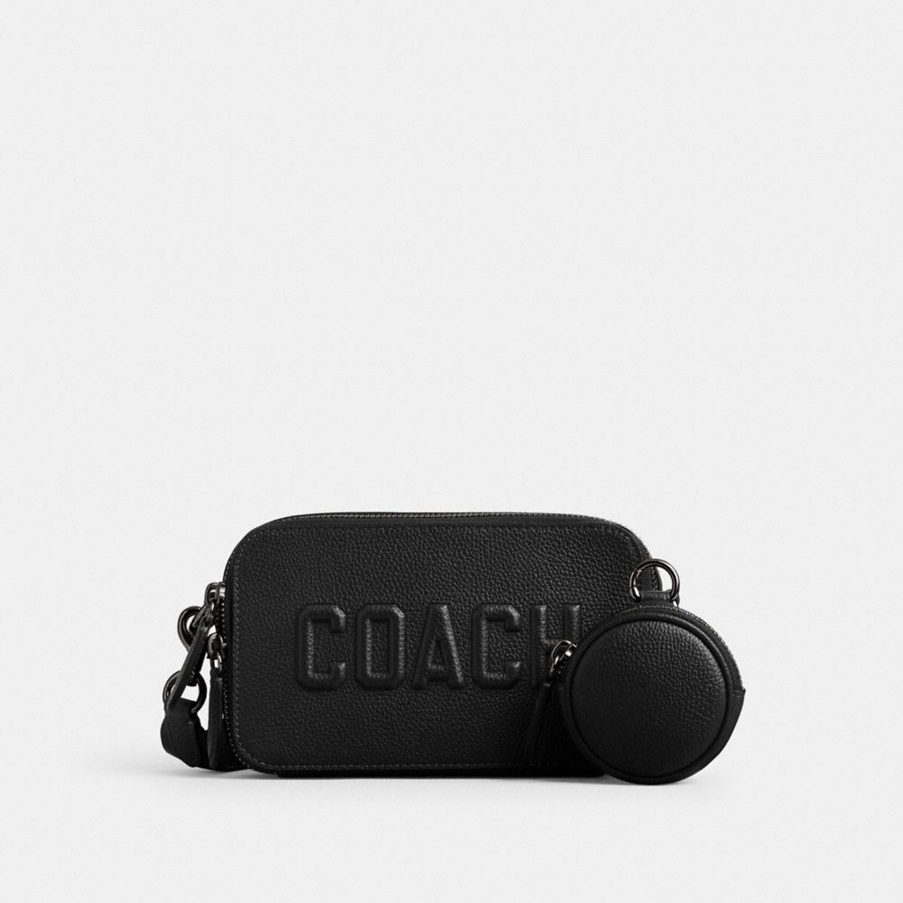 For adventures near and far, our Charter is designed to make every journey, commute and errand feel like a first-class experience. Debossed with our dimensional Coach graphic, this compact one compartment crossbody is crafted of polished pebble leather and features a detachable round zip pouch to hold small essentials. Slip it into a larger bag or convert it to a small messenger with the detachable strap.