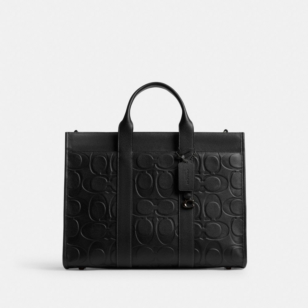A confident carryall with sleek functionality, our Wesley Tote is a roomy design for everyday. With a well-organized interior for business needs, space for a 16" laptop and more, it’s crafted of polished pebble leather embossed with our Maxi Signature and features a secure zip closure, outside slip pockets for easy access to essentials and a lightweight webbing strap for hands-free wear.
